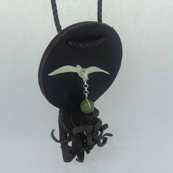 Y'esma/ Siyah Deri Yeşim Taşlı Martı Kolye